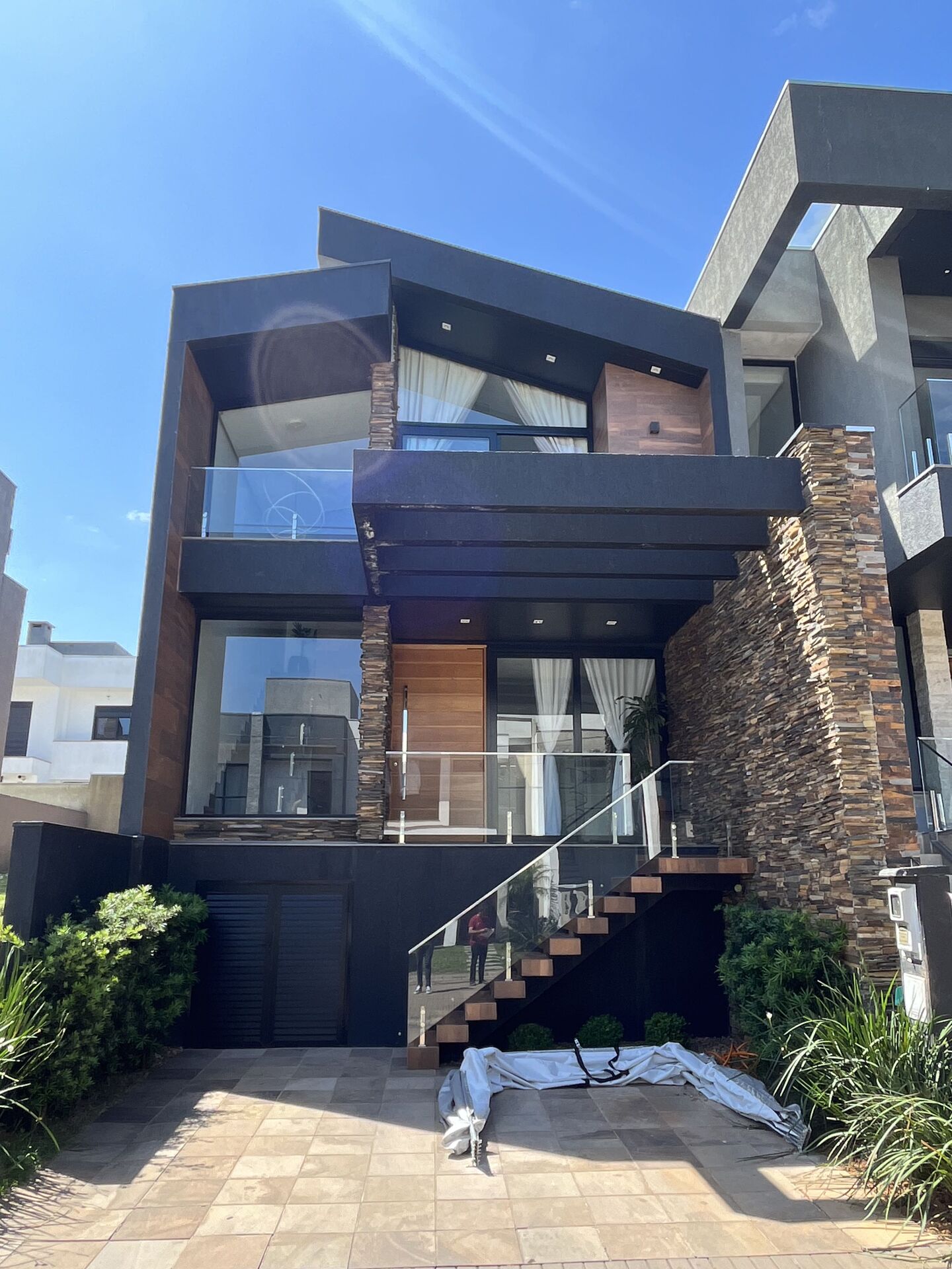 Aberturas em Pvc preto e revestimentos todos combinando com estilo da casa.